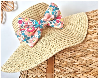 Chapeau de paille orné d'un joli ruban de liberty avec un double nœud romantique .