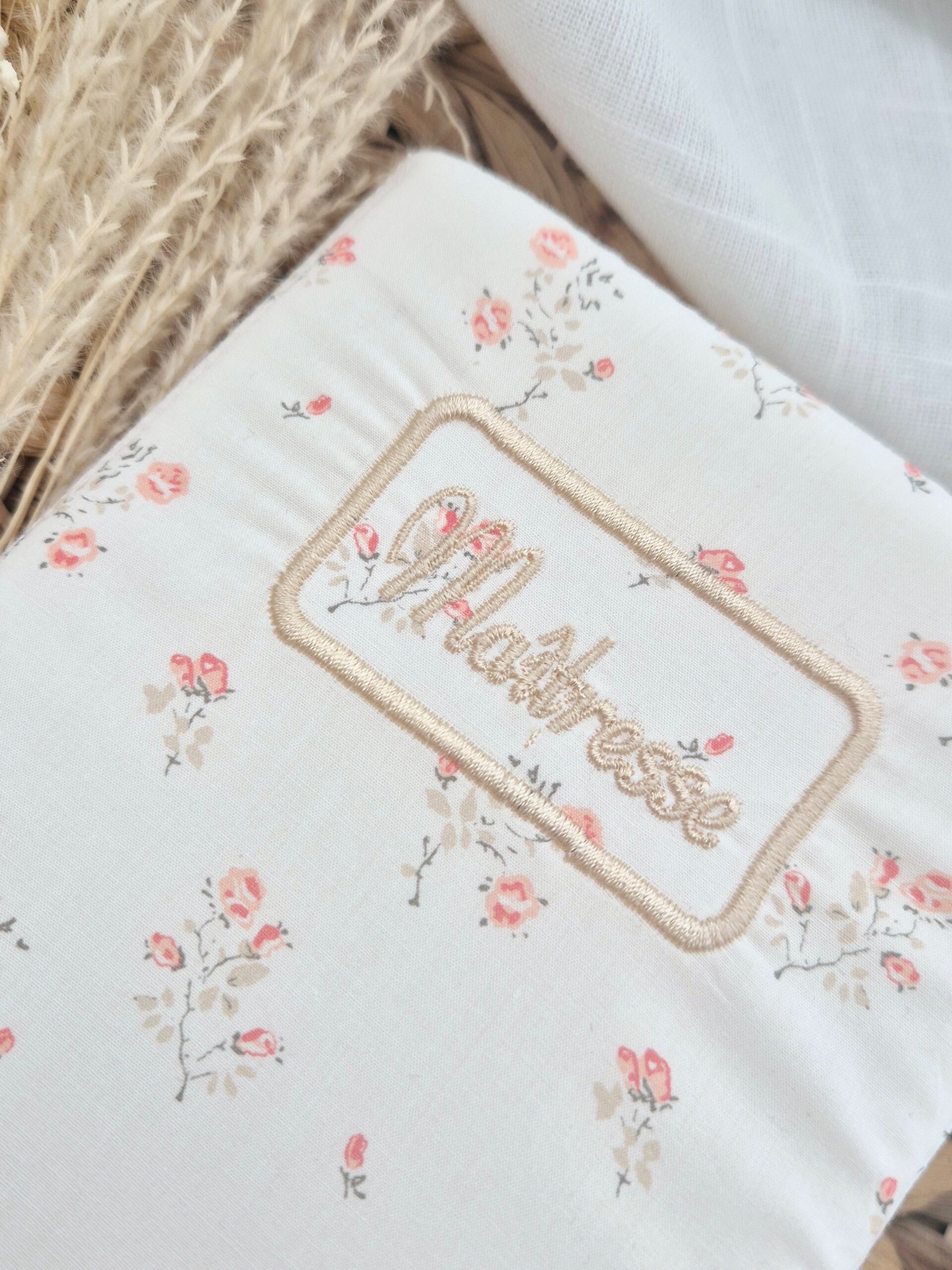 Avec son portège carnet artisanal cousu et brodé dans mon atelier .